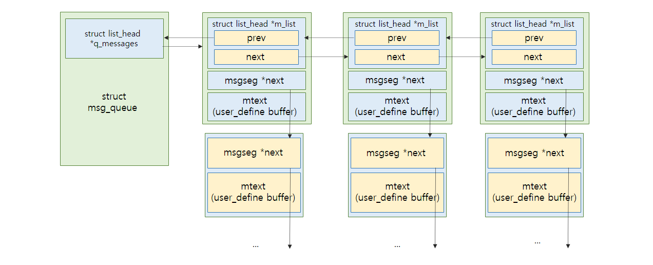 먼저 do_msgsnd() 힘수는 load_msg() 함수를 통해 메시지 객체를 할당하고 초기화 한다. load_msg() 함수는 alloc_msg() 함수로 메시지 객체를 할당하고, 할당한 객체는 msg_msg 구조체와 사용자가 지정한 m_text 으로 구성되어 있다.